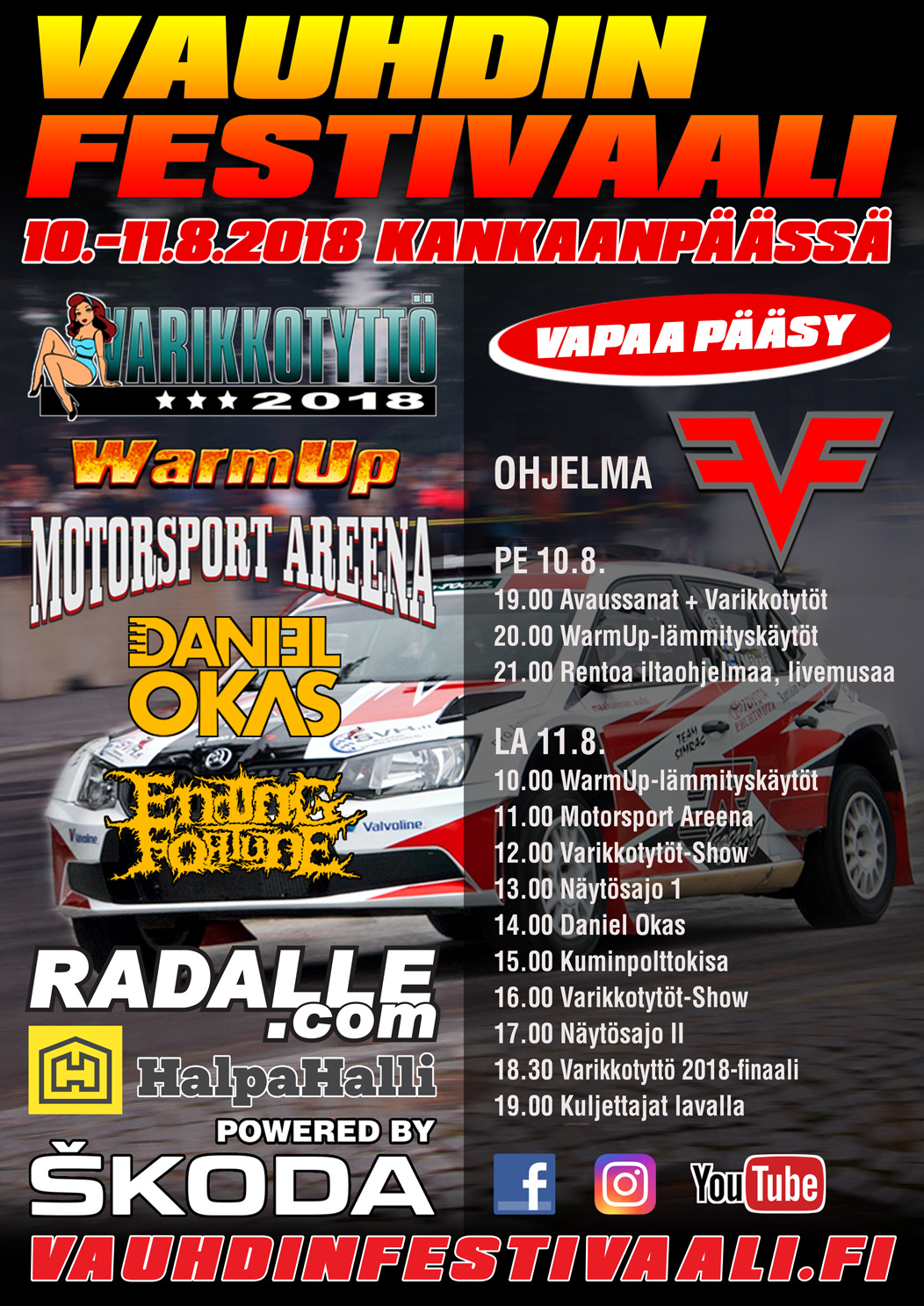 Tänä vuonna Vauhdin Festivaali järjestetään 10.-11. elokuuta, nyt jo neljännen kerran. Tulossa on jälleen uutta ja paljon nähtävää!!!